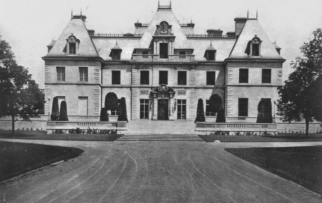 [When the estate was in full operation, there were] approximately 126 personnel to be paid, and in many cases, housed, and fed. It certainly accounted for a good size payroll, even though wages were low in those days. Clarence H. Mackay never owned Harbor Hill, as it was given to his [first] wife Katherine, by Clarence’s father, Mr. J.W. Mackay. When she divorced C.H. Mackay [in 1914], she put it [the property] in [her son] young John W. Mackay’s name. When Clarence Mackay died in 1938, the place went down and was ransacked by vandals. It was sold [by son John W. Mackay] to a Mr. Roth, a Manhattan builder, in 1954, who built small country estates there. The mansion was demolished around 1947.